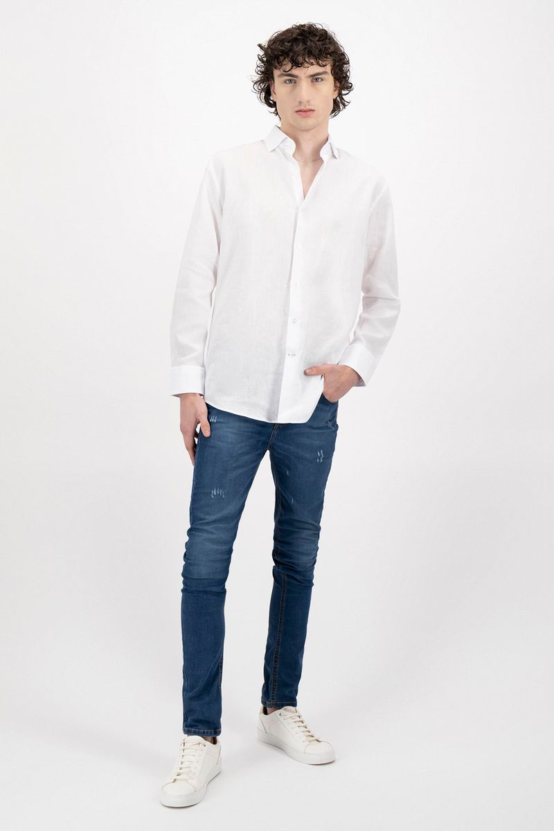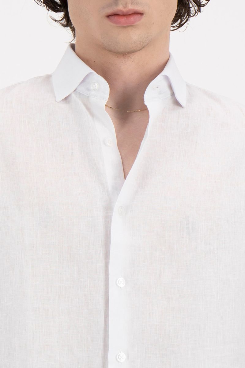El cuello francés ajustado y su contemporary fit le da un toque de elegancia y sofisticación, mientras que la silueta casual y relajada la hace perfecta para cualquier ocasión. El lino es una fibra natural que requiere menos agua y pesticidas que otros materiales, lo que la convierte en una opción ideal para aquellos que buscan reducir su huella de carbono. Composición: 100% lino.