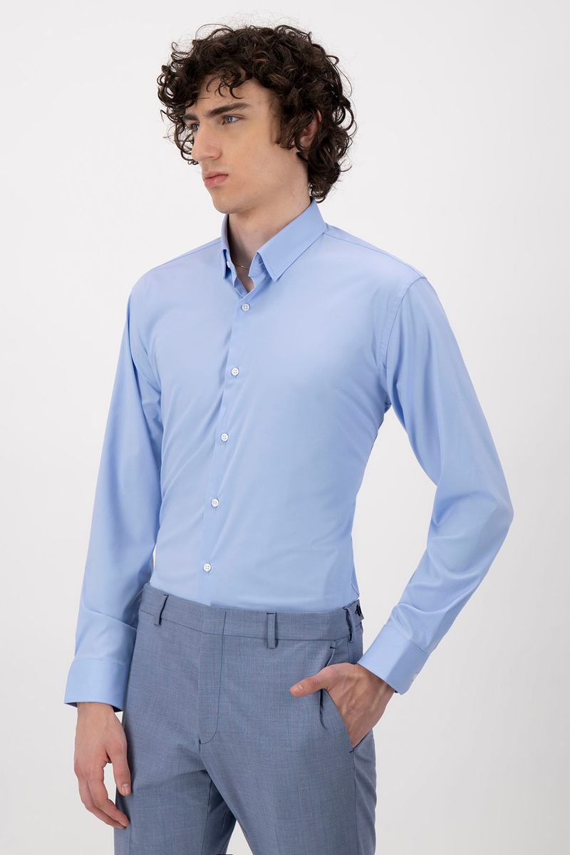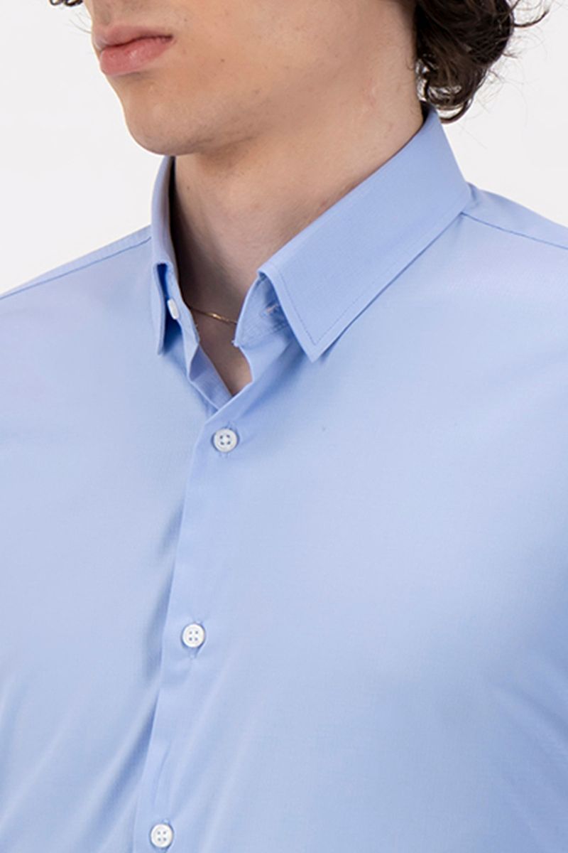 Elegancia y sostenibilidad en una sola prenda. Nuestra camisa formal de manga larga en color azul está confeccionada con Bamboo Fiber, un material ecológico, transpirable y ultra suave.
