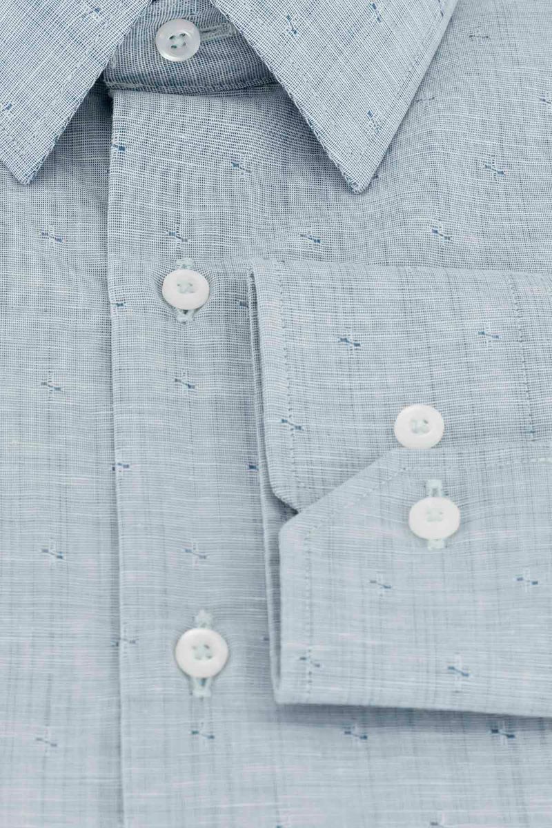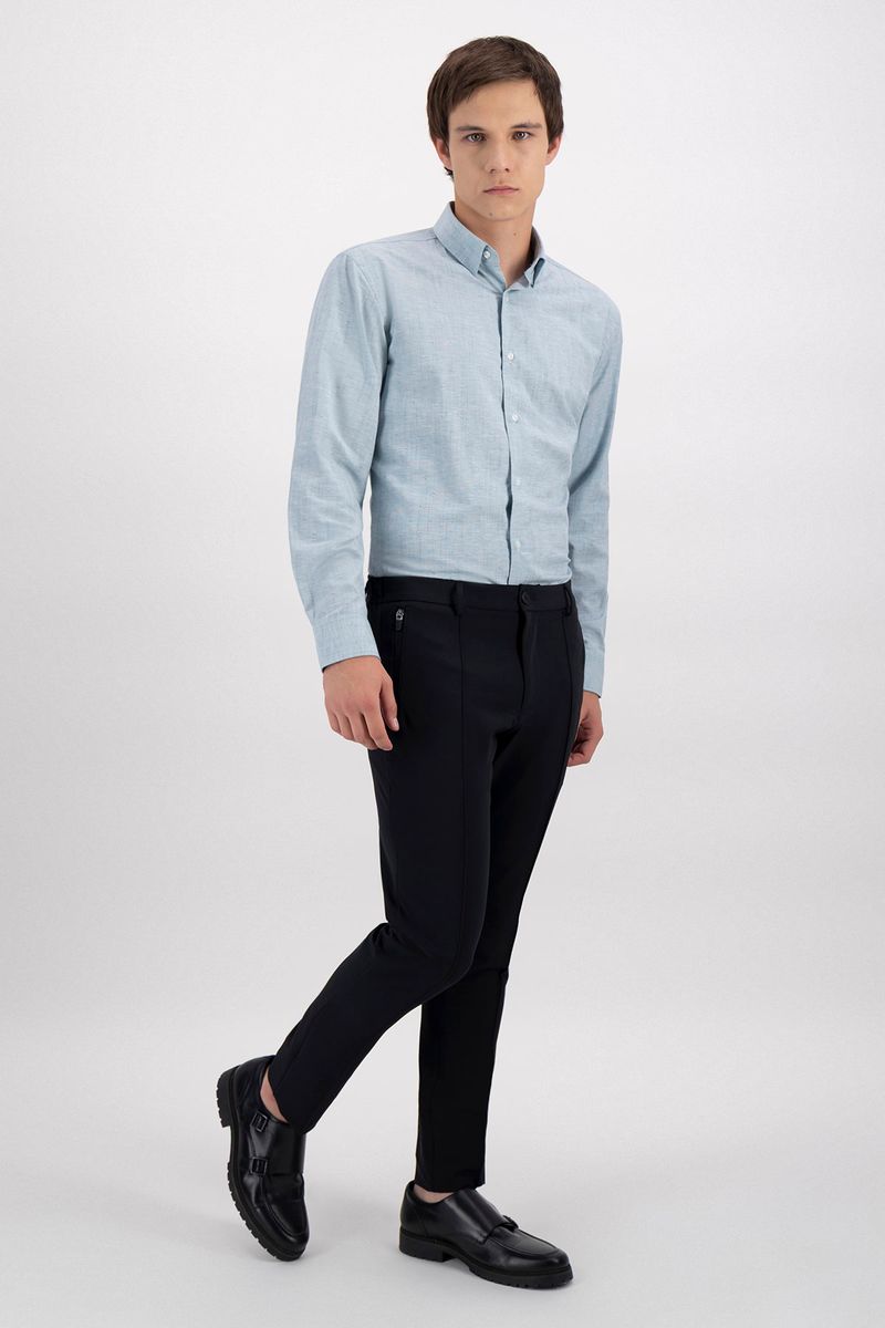 Camisa formal skinny fit con cuello francés, delantero planchado con doblez doble, confeccionada en suave tela de lino.
