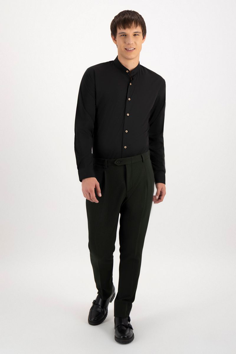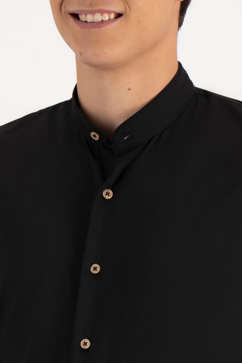 Camisa slim fit con fibra de maíz, cuello mao y detalles en contraste. Su diseño elegante y sustentable ofrece suavidad, protección UV y estilo sin esfuerzo.