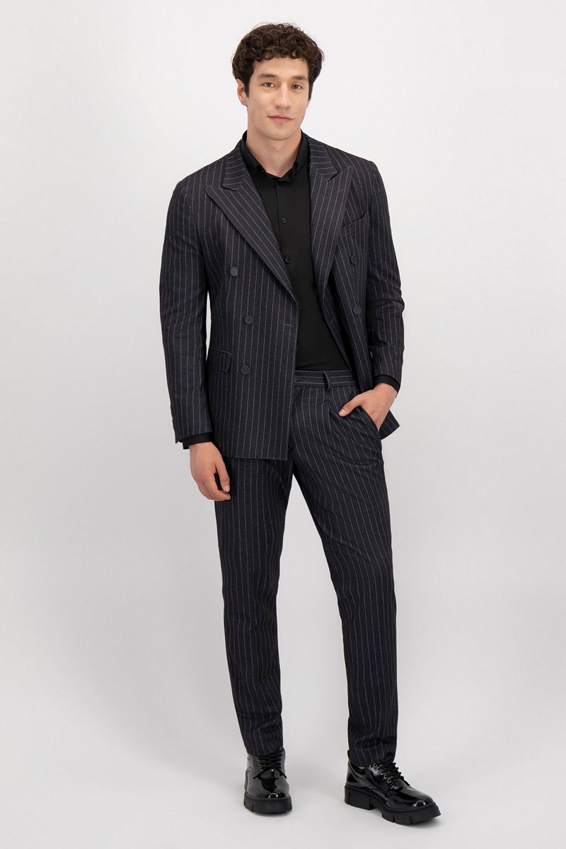 Saco cruzado slim fit con tecnología Jersey de Lmental. Sofisticación clásica con confort moderno, ideal para un estilo formal sin restricciones.