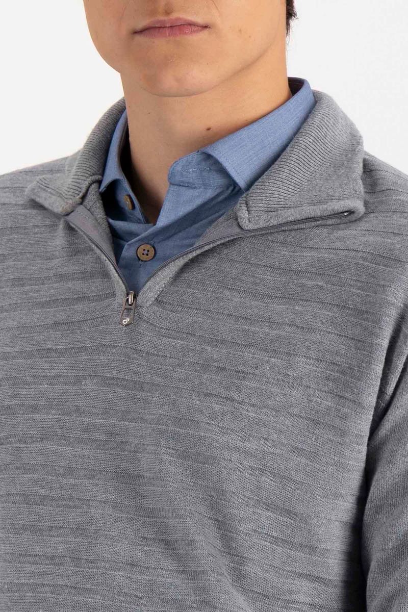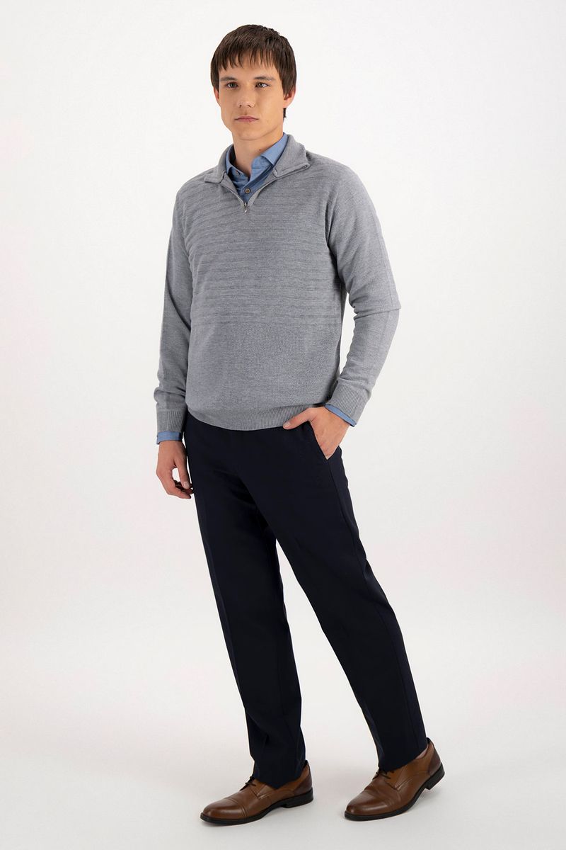 Suéter slim fit con medio cierre. Diseño casual y moderno con un ajuste cómodo y ligero. Perfecto para un estilo activo y urbano.