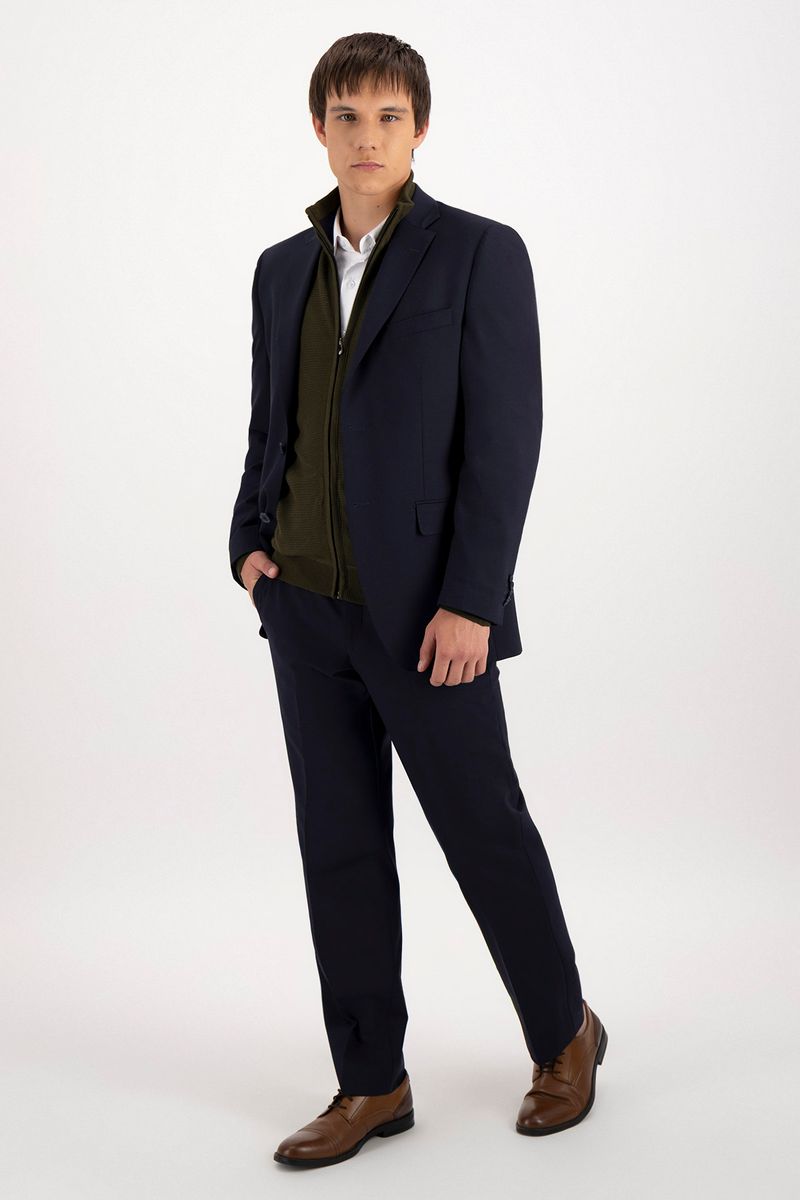 Traje contemporary fit en mezcla de lana sustentable. Corte recto, diseño actual y una elegancia que se adapta a cada ocasión con frescura y distinción.